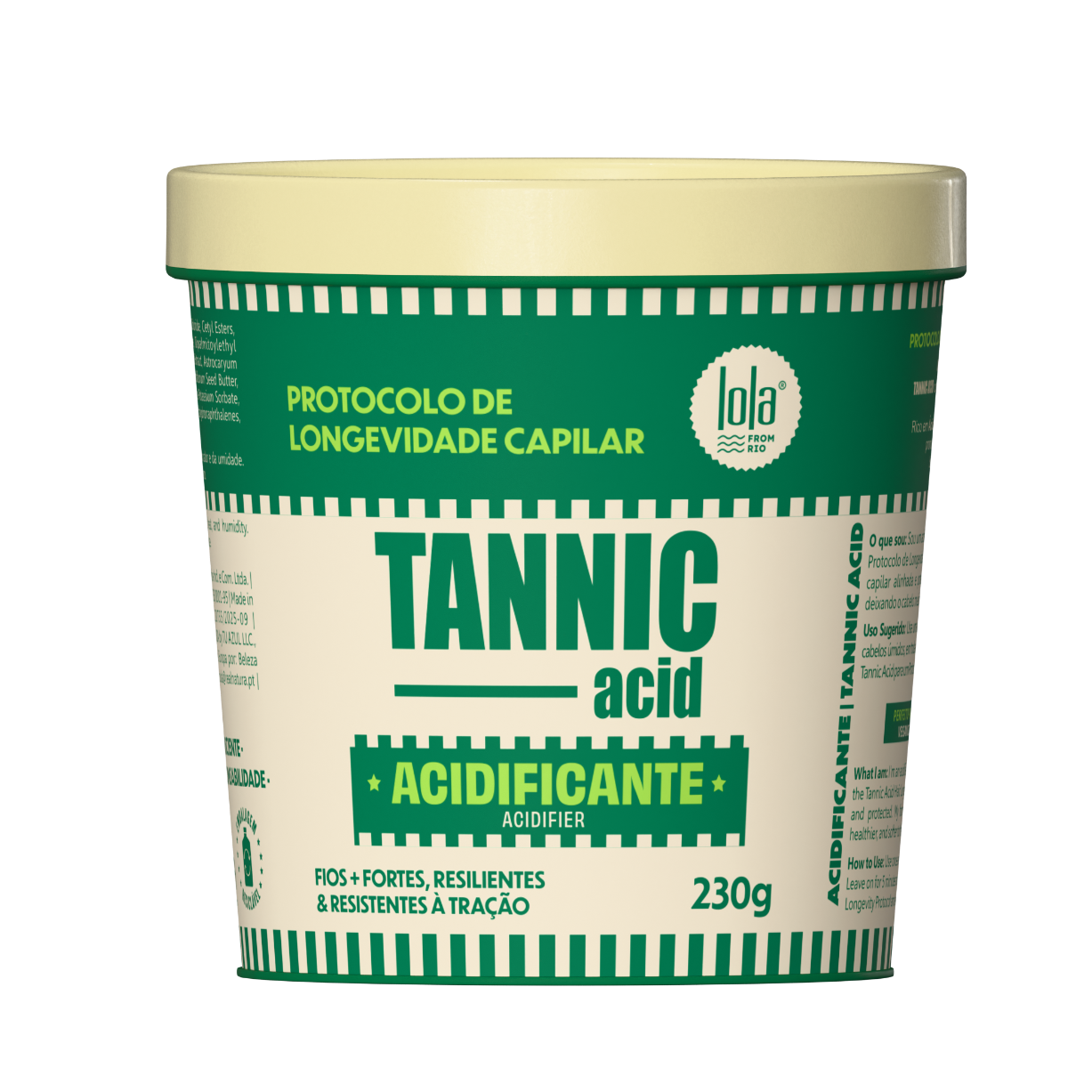Soy un acidificante que reequilibra el pH del cabello después del lavado. Como segundo paso del Protocolo de Longevidad Capilar con Ácido Tánico, ayudo a sellar la cutícula y a mantener la estructura capilar alineada y protegida. Mi fórmula promueve fuerza, brillo y durabilidad, dejando el cabello más fuerte, sano y suave al tacto.
